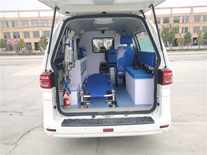 東風(fēng)風(fēng)行菱智國(guó)六救護(hù)車標(biāo)準(zhǔn)配置:白色車身+紅色強(qiáng)效反光帶及急救圖徽,醫(yī)療艙窗戶上貼玻璃膜 2/3,原車?yán)渑照{(diào)系統(tǒng),長(zhǎng)條式警燈,100W 警報(bào)器,車頂左右后側(cè)各安裝模塊式爆閃燈,醫(yī)療艙內(nèi)部 LED 照明燈,500W 正弦波逆變器系統(tǒng),常規(guī)電路、電器保護(hù)盒系統(tǒng)、醫(yī)療艙翹板開(kāi)關(guān)控制系統(tǒng),艙內(nèi)可供 220V 電源插座,長(zhǎng)條式紫外光滅菌燈,醫(yī)療艙頂部輸液掛架,駕駛室與醫(yī)療艙安裝分隔墻:帶可推拉玻璃窗戶,1.醫(yī)療艙隔斷后部安裝沃克板材醫(yī)療器,1. 醫(yī)療艙右側(cè)正向安裝獨(dú)立靠背座椅 2. 醫(yī)療艙右側(cè) 2 人長(zhǎng)條軟包座椅及安全帶 3. 醫(yī)療艙左側(cè)安裝翻轉(zhuǎn)式長(zhǎng)條座椅,全車安裝隱藏式安全預(yù)埋件,采用藍(lán)色環(huán)保型耐磨、防滑醫(yī)療地板及墊層,配備折疊擔(dān)架,滅火器,醫(yī)用垃圾桶等。
